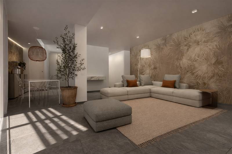 Completa l'appartamento una cantina di 8mq al piano interrato ed un garage con lo spazio per una macchina di medie dimensioni, oltre ai posti auto scoperti della il cui accesso è garantito da una sbarra.