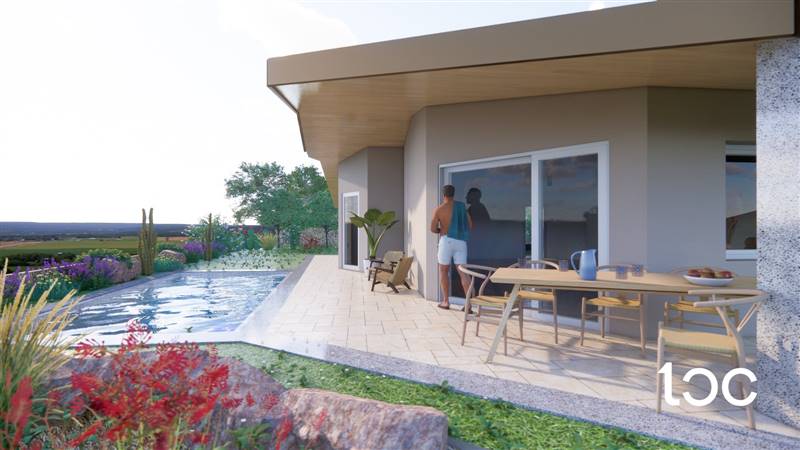 VILLA B Immersa in un contesto residenziale nuovo, elegante e riservato, a breve distanza dal centro di Budoni e dalle sue incantevoli spiagge, questa villa centrale di nuova costruzione rappresenta la perfetta sintesi tra stile moderno, comfort abitativo e qualità costruttiva. Disposta interameente su un unico livello, la villa gode di grande luminosità naturale, grazie anche ai velux nei bagni che donano luce zenitale e ariosità agli ambienti interni. Una veranda coperta con vista mare introduce alla zona giorno composta da soggiorno spazioso e cucina separata, mentre la zona notte accoglie tre camere da letto e due bagnifinemente rifiniti. All’esterno, un curato giardino privato ospita una splendida piscina di 6x3 metri, dotata di copertura calpestabile su binari, ideale per coniugare funzionalità e sicurezza, oltre a un posto auto riservato. Le finiture interne sono state selezionate con particolare attenzione al design e alla qualità: pavimenti e rivestimenti firmati Marazzi e Ragno, porte del gruppo Garofoli, soglie in granito sardo lavorato. I bagni sono impreziositi da sanitari sospesi, rubinetteria di marca e dettagli eleganti che valorizzano ogni spazio. Il comfort è garantito da un sistema di climatizzazione canalizzata con pompa di calore, fan coil a parete e termostati indipendenti in ogni stanza. La casa è dotata inoltre di sistema domotico integrato, per il controllo intelligente di luci, carichi elettrici e temperatura.