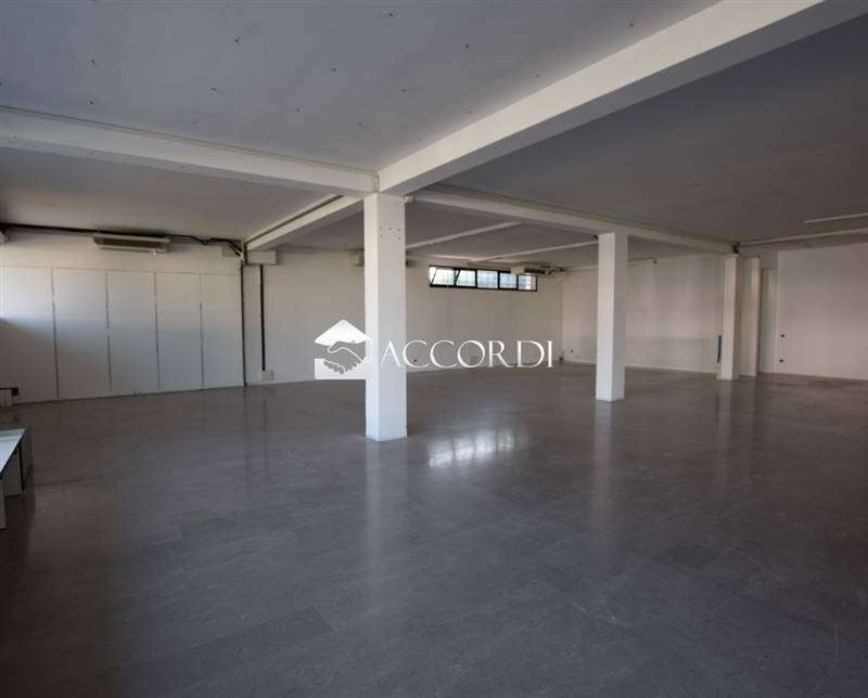 Affittasi locale commerciale di circa 400 mq al piano terra e 400 mq al piano interrato al quale si può accedere sia da una scala interna che con mezzi da una rampa esterna. Il piano terra, in ottimo stato, internamente si presenta come open space più una sala riunioni e un bagno ddi servizio finestrato con antibagno dov'è presente un lavandino, mentre al piano interrato vi è un ampio deposito con un abbondante ripostiglio. Il locale ha un piccolo " montacarichi".