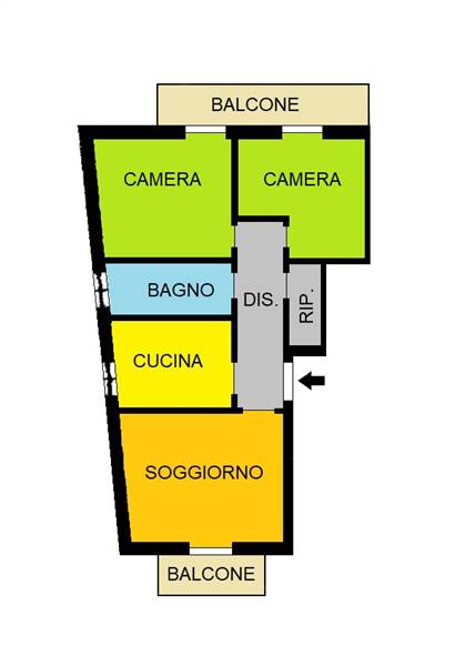 ZONA 2000 - Appartamento posto al secondo piano senza ascensore in un piccolo contesto condominiale, composto da soggiorno, cucina abitabile, bagno finestrato, ripostiglio e due camere da letto.